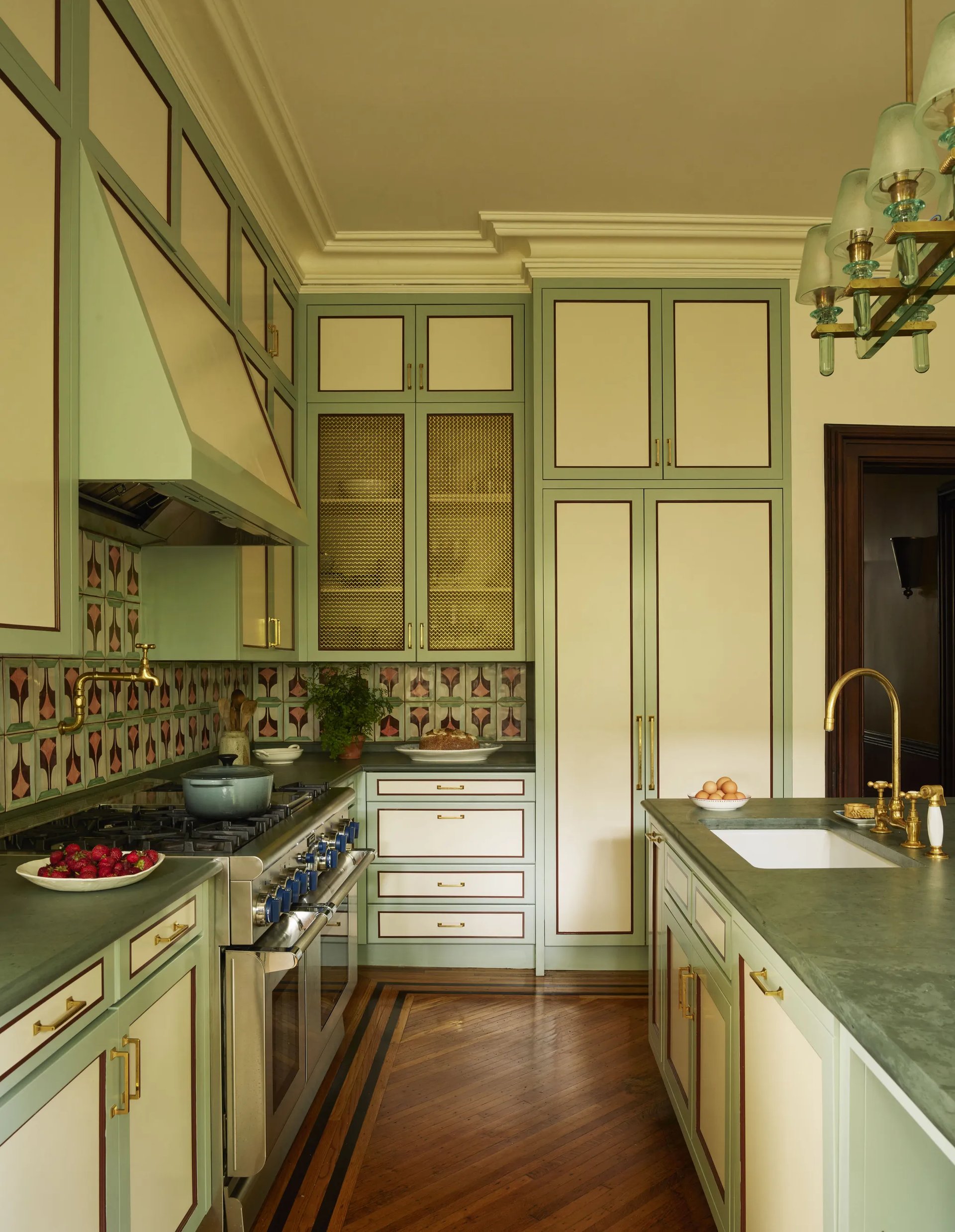 A family kitchen in an 1840s Brooklyn townhouse revived by GRT Architects, including interiors by Charlap Hyman & Herrero.