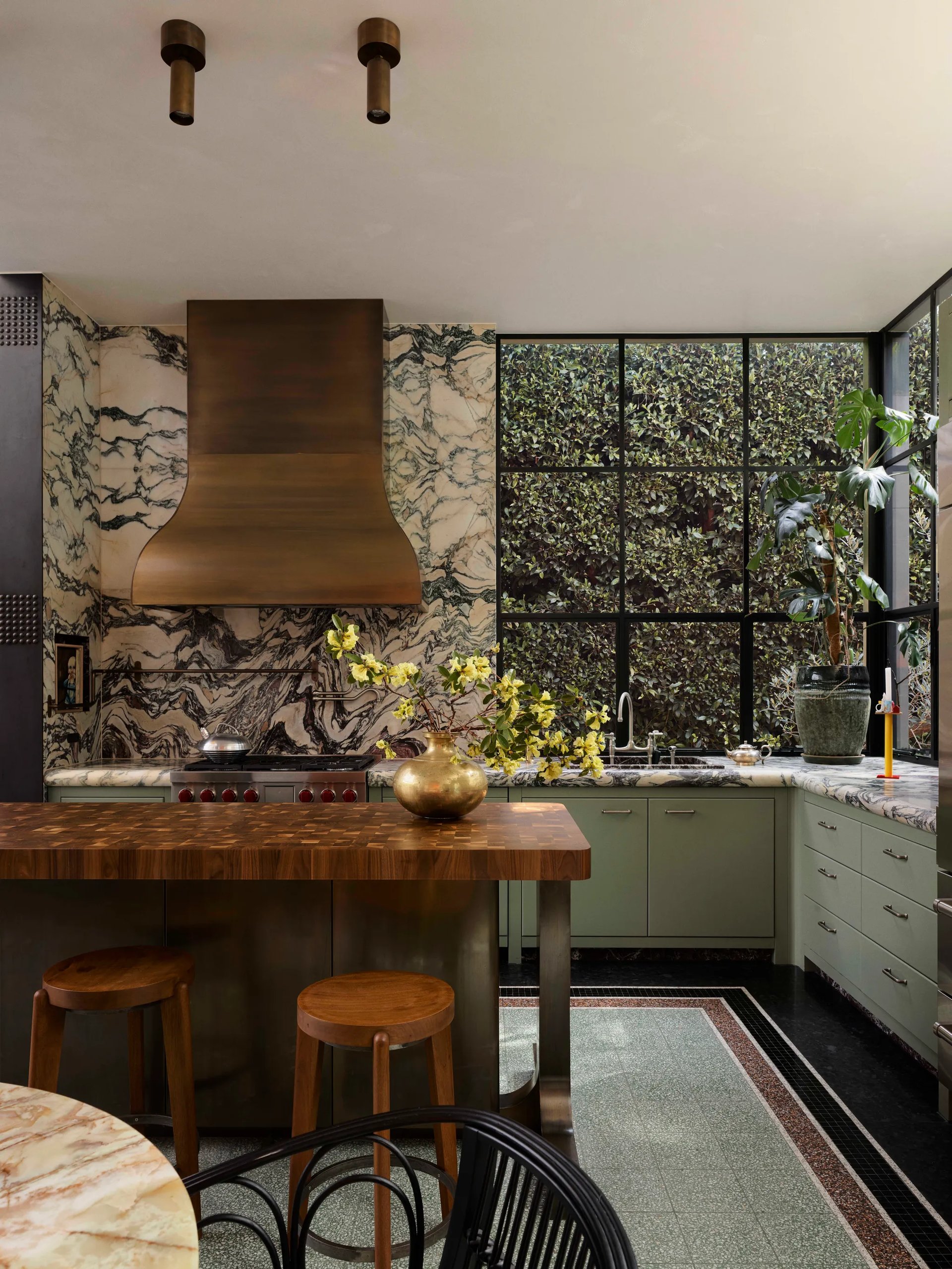 The material-rich kitchen of a 1930s Melbourne house designed by Flack Studio.