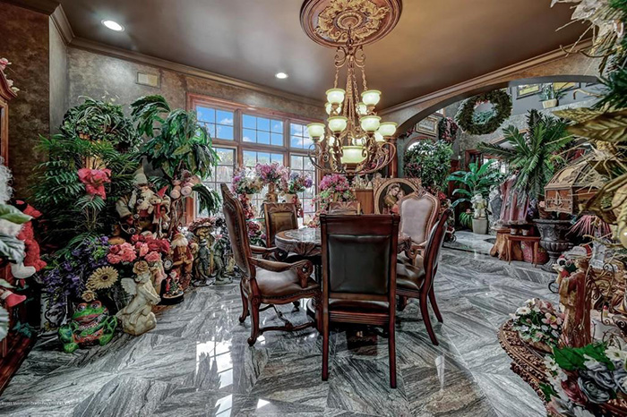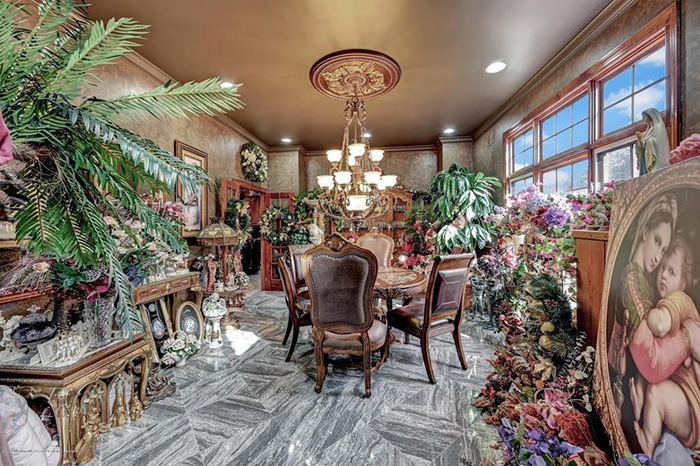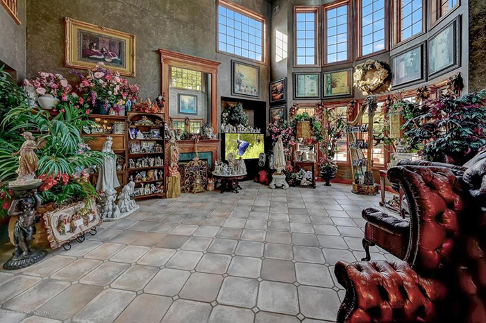From the exterior, you’d never know what holiday wonder awaits inside. Take a look and see if it doesn’t have you humming carols! In fact, The 12 Days of Christmas comes to mind as the homes boasts: 81 wreaths, 60 swags, 30 Christmas trees, 20 nutcrackers, 238 angels, 38 Santa figures, 14 nativity scenes, 115 religious statues, and 100 other Christmas-related items. See if you can spot them all!